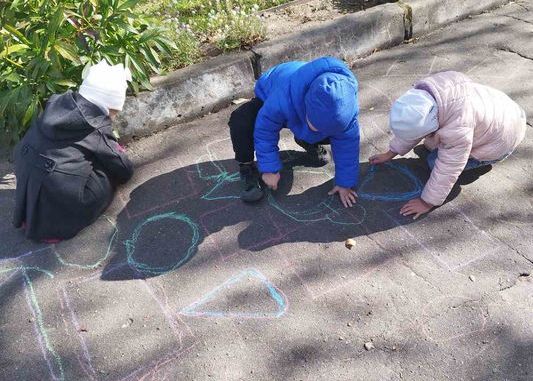 22.10.2025Очень увлекательное занятие на прогулке-рисование мелками на асфальте. Рисование мелом развивает воображение , творческие способности, мелкую моторику пальцев рук, а самое главное создает хорошее настроение и радость от собственных рисунков. Рисуя на асфальте мелками, детки испытывают совсем не те ощущения, чем при рисовании карандашами и кисточками на бумаге. Совсем неважно, какой рисунок в конце появится на асфальте, важен сам процесс рисования, он доставляет детям огромное удовольствие!