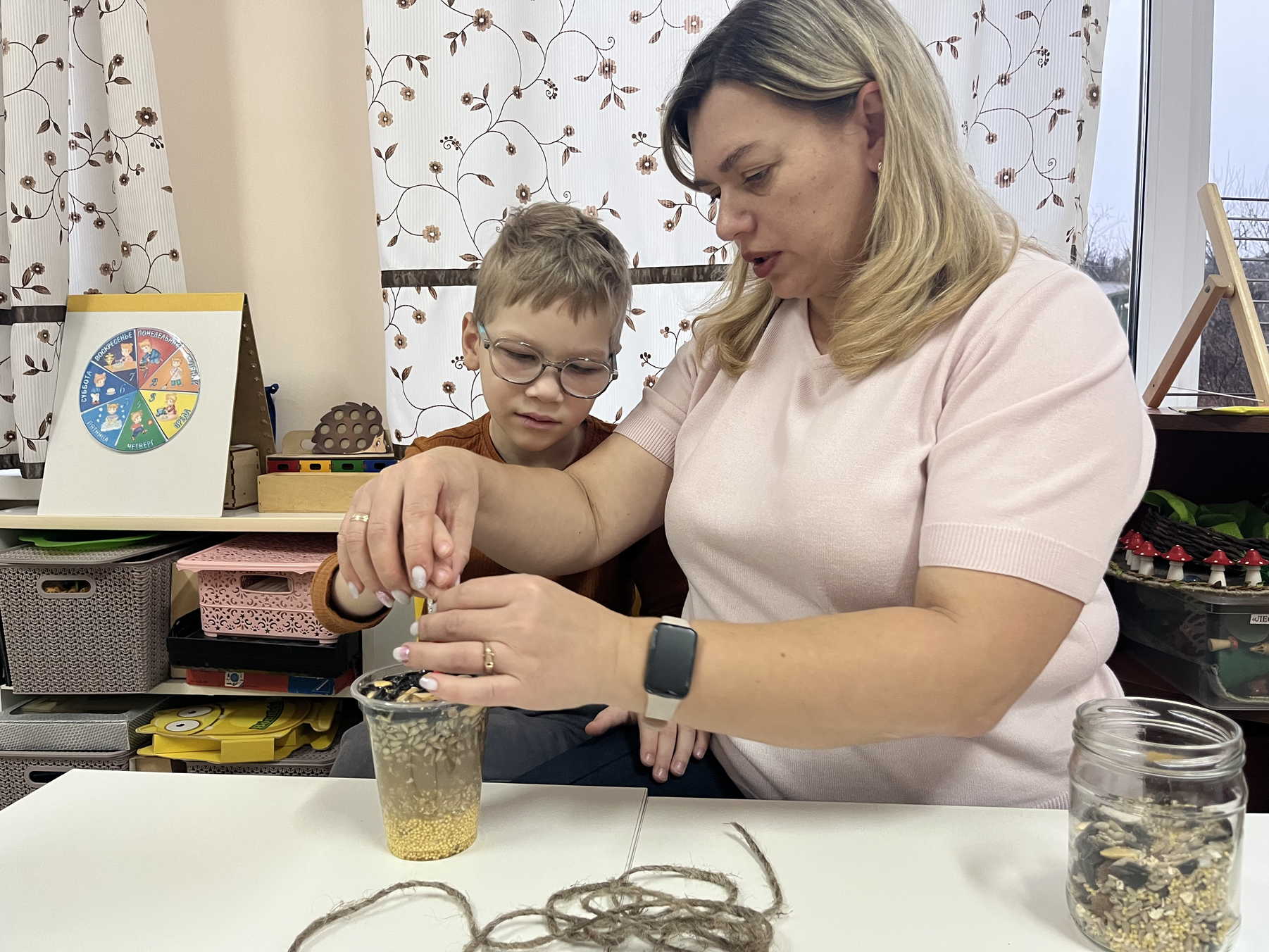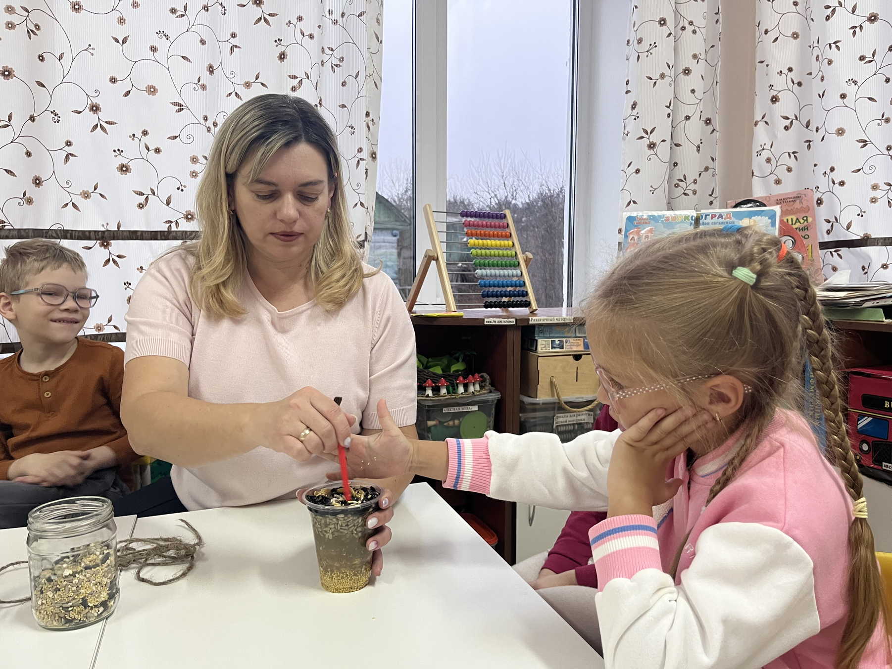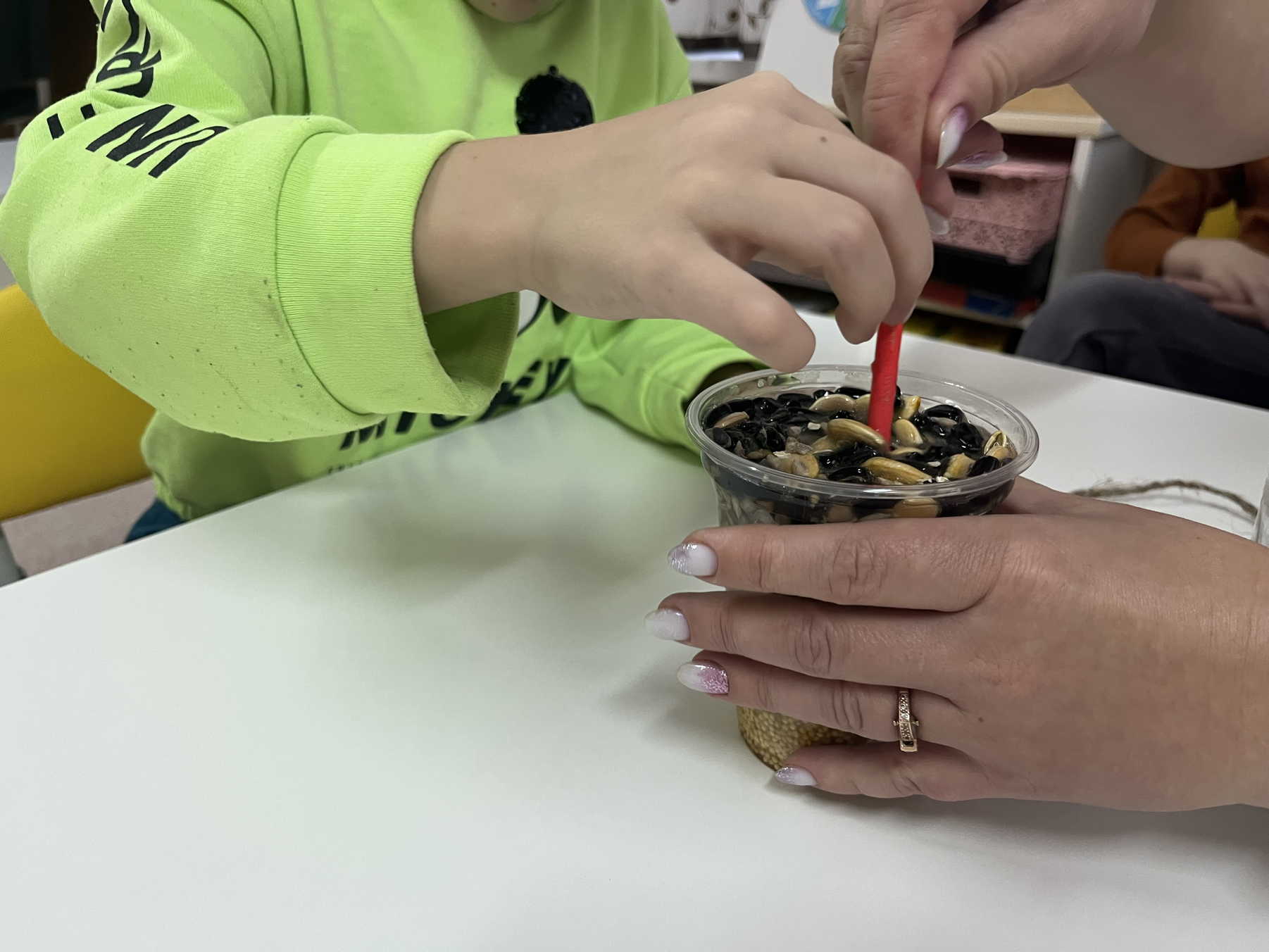 В основе нашей экокормушки-зерна и крупа, а также желатин для застывания и придания формы. Ребята с удовольствием помогали в изготовлении, а потом дружно повесили лакомство на ветку. теперь каждый день находим минутку, чтобы понаблюдать какие птицы прилетают чтобы полакомиться.